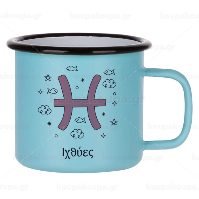 Ζώδια Ιχθύες, Κούπα Μεταλλική εμαγιέ ΜΑΤ σιέλ 360ml