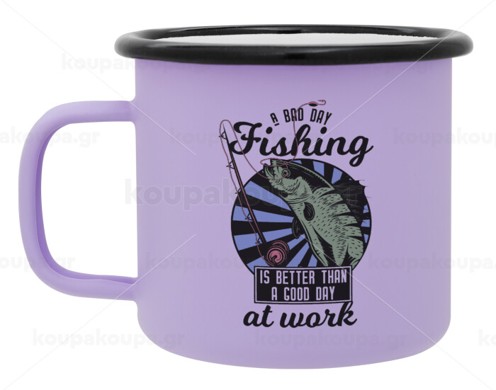 A bad day FISHING is better than a good day at work, Κούπα Μεταλλική εμαγιέ ΜΑΤ Light Pastel Purple 360ml