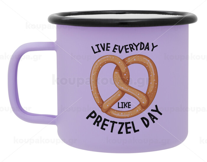 The office, Live every day like pretzel day, Κούπα Μεταλλική εμαγιέ ΜΑΤ Light Pastel Purple 360ml