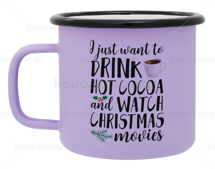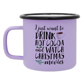 I just want to drink hot cocoa and watch christmas movies, Κούπα Μεταλλική εμαγιέ ΜΑΤ Light Pastel Purple 360ml