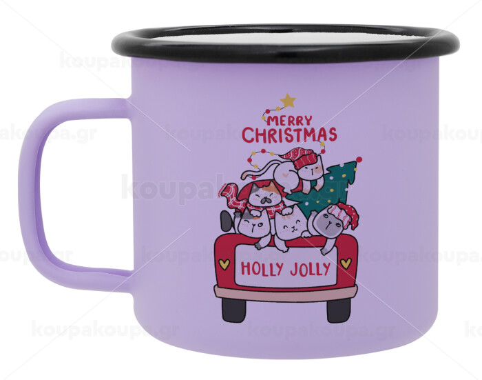 Merry Christmas cats in car, Κούπα Μεταλλική εμαγιέ ΜΑΤ Light Pastel Purple 360ml