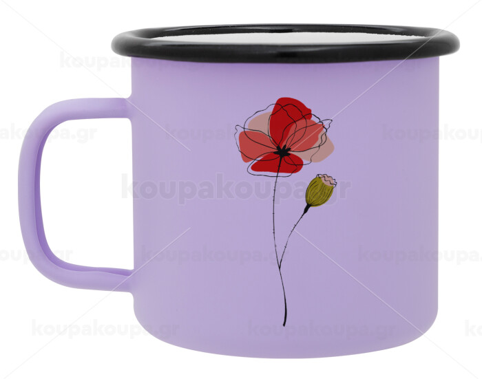 Red poppy flowers papaver, Κούπα Μεταλλική εμαγιέ ΜΑΤ Light Pastel Purple 360ml