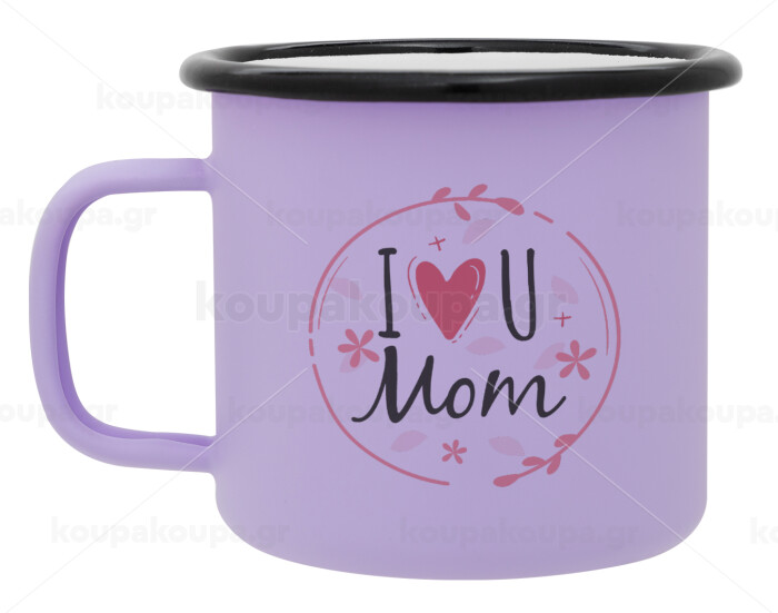 I Love you Mom pink, Κούπα Μεταλλική εμαγιέ ΜΑΤ Light Pastel Purple 360ml