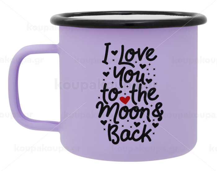 I love you to the moon and back with hearts, Κούπα Μεταλλική εμαγιέ ΜΑΤ Light Pastel Purple 360ml