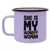 She is my wonder woman, Κούπα Μεταλλική εμαγιέ ΜΑΤ Light Pastel Purple 360ml