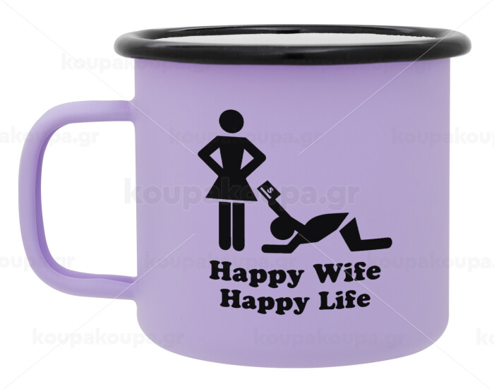 Happy Wife, Happy Life, Κούπα Μεταλλική εμαγιέ ΜΑΤ Light Pastel Purple 360ml
