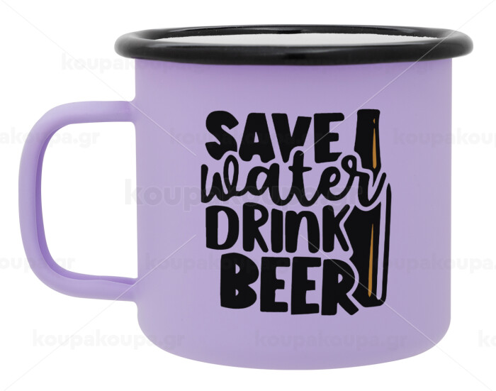 Save Water, Drink BEER, Κούπα Μεταλλική εμαγιέ ΜΑΤ Light Pastel Purple 360ml