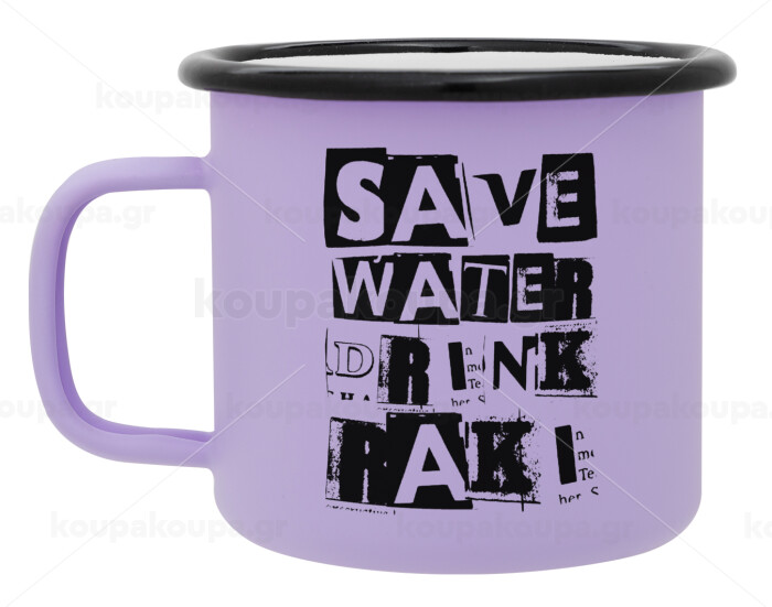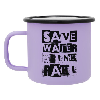 Save Water, Drink RAKI, Κούπα Μεταλλική εμαγιέ ΜΑΤ Light Pastel Purple 360ml
