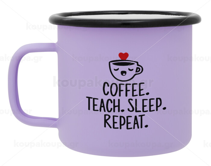 Coffee Teach Sleep Repeat, Κούπα Μεταλλική εμαγιέ ΜΑΤ Light Pastel Purple 360ml