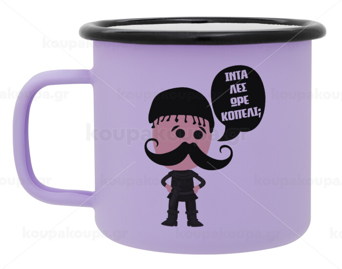 Κρητικός "Ίντα λες ωρέ κοπέλι", Κούπα Μεταλλική εμαγιέ ΜΑΤ Light Pastel Purple 360ml