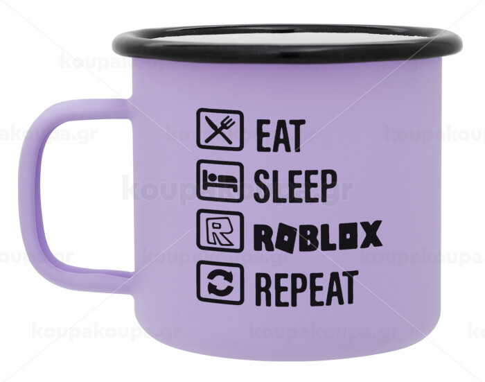 Eat, Sleep, Roblox, Repeat, Κούπα Μεταλλική εμαγιέ ΜΑΤ Light Pastel Purple 360ml