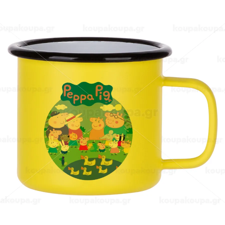 Peppa pig Family, Κούπα Μεταλλική εμαγιέ ΜΑΤ Κίτρινη 360ml