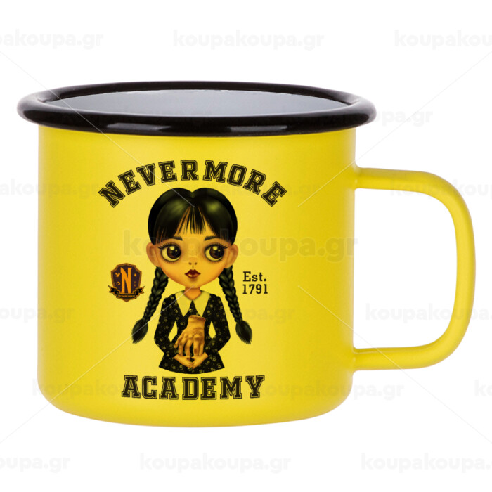 Wednesday Adams, nevermore, Κούπα Μεταλλική εμαγιέ ΜΑΤ Κίτρινη 360ml
