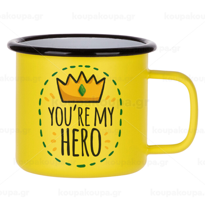 Dad, you are my hero!, Κούπα Μεταλλική εμαγιέ ΜΑΤ Κίτρινη 360ml