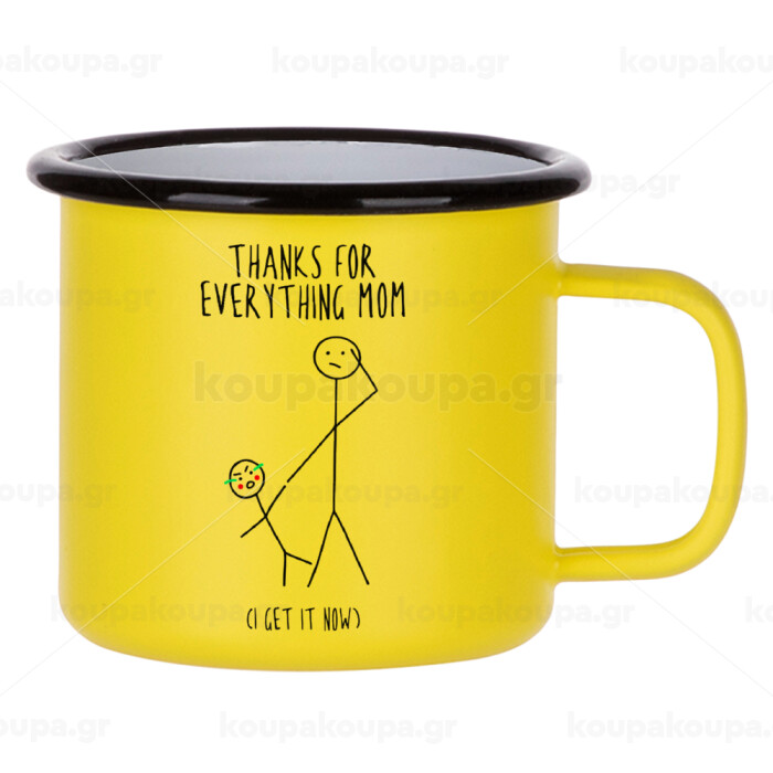 Thanks for everything mom, Κούπα Μεταλλική εμαγιέ ΜΑΤ Κίτρινη 360ml