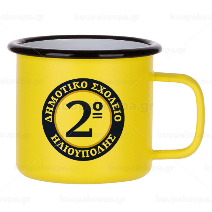 Έμβλημα Σχολικό μπλε/χρυσό, Κούπα Μεταλλική εμαγιέ ΜΑΤ Κίτρινη 360ml