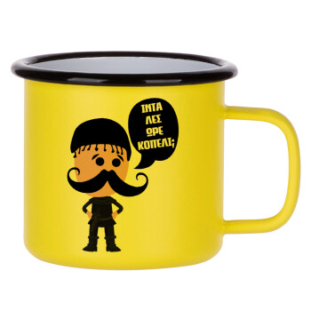 Κρητικός "Ίντα λες ωρέ κοπέλι", Κούπα Μεταλλική εμαγιέ ΜΑΤ Κίτρινη 360ml