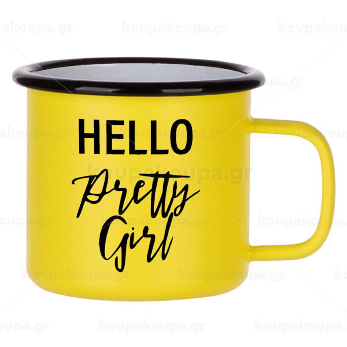 Hello pretty girl, Κούπα Μεταλλική εμαγιέ ΜΑΤ Κίτρινη 360ml