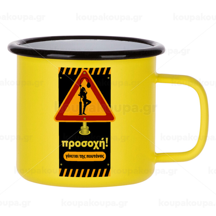 Προσοχή Γίνεται της πουτ.νας, Κούπα Μεταλλική εμαγιέ ΜΑΤ Κίτρινη 360ml