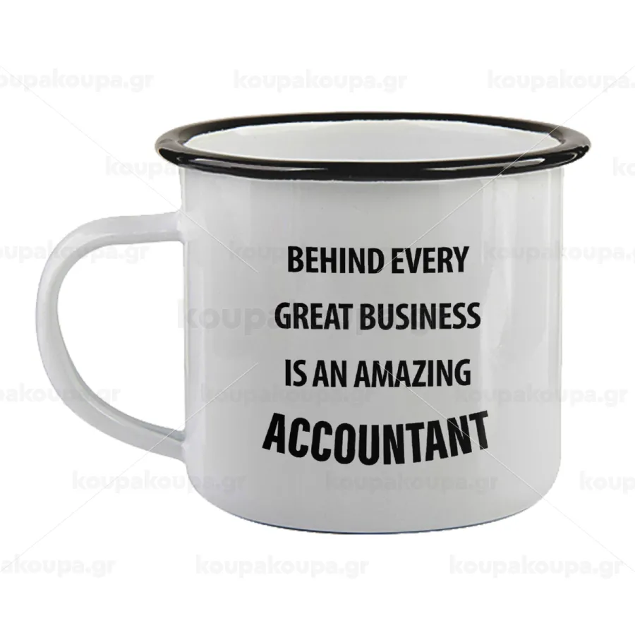 Behind every great business, Κούπα εμαγιέ με μαύρο χείλος 360ml