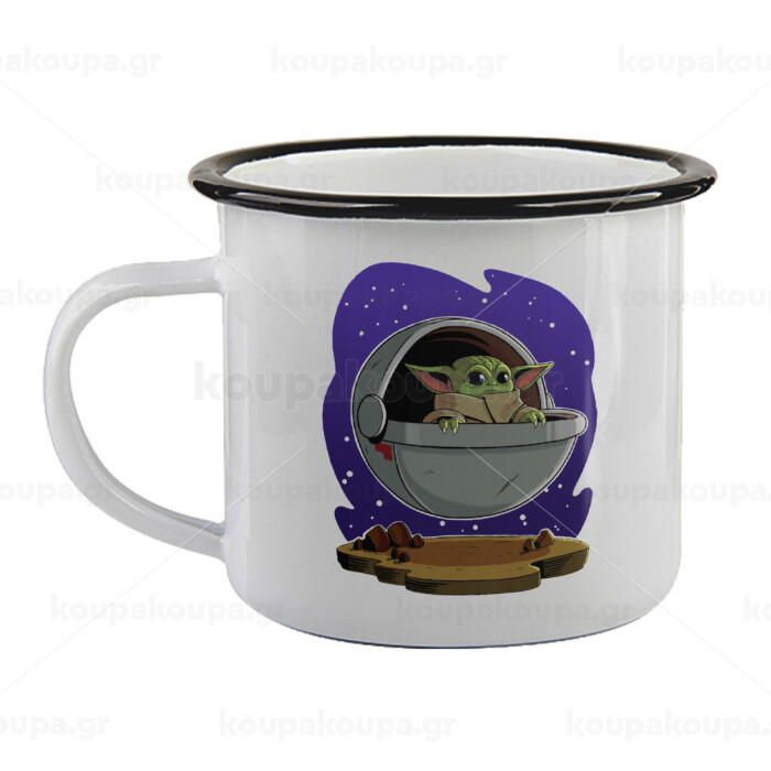 Baby Yoda mandalorian, Κούπα εμαγιέ με μαύρο χείλος 360ml