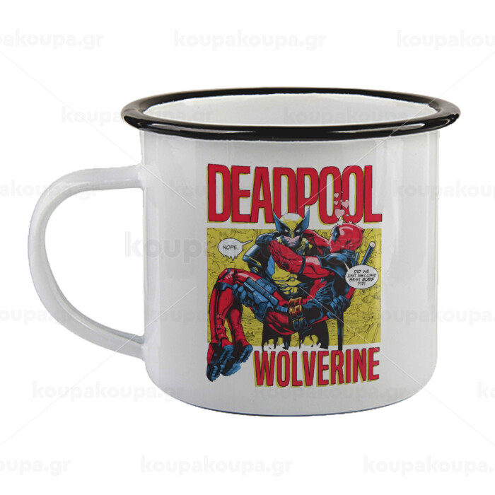 Superhero Deadpool Wolverine, Κούπα εμαγιέ με μαύρο χείλος 360ml