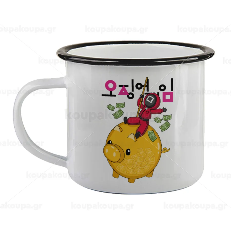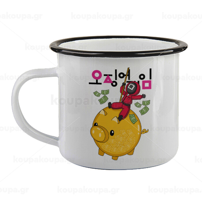 Squid game money pig, Κούπα εμαγιέ με μαύρο χείλος 360ml