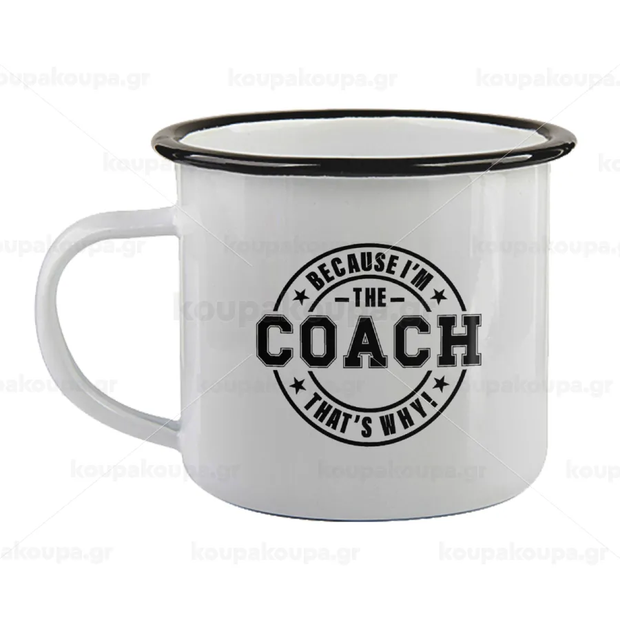 Because i'm the Coach, Κούπα εμαγιέ με μαύρο χείλος 360ml