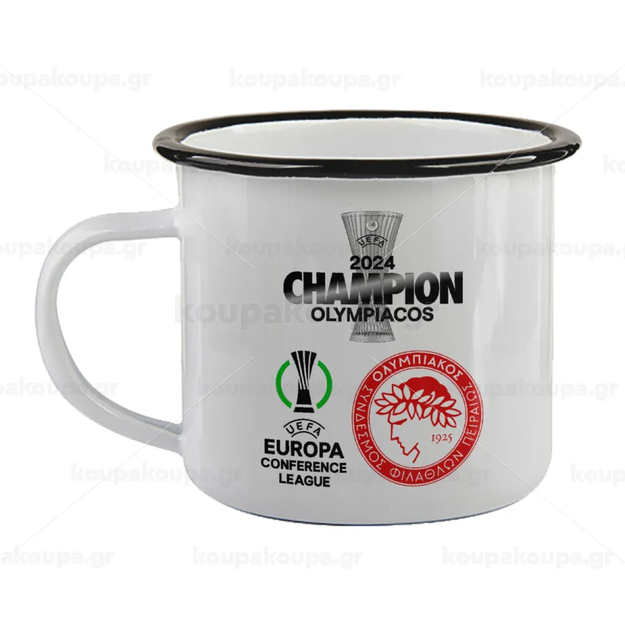 Olympiacos UEFA Europa Conference League Champion 2024, Κούπα εμαγιέ με μαύρο χείλος 360ml
