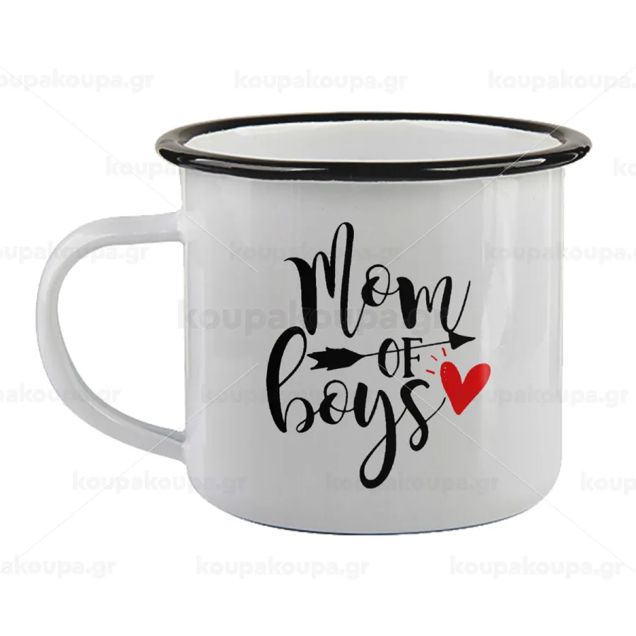 Mom of boys, Κούπα εμαγιέ με μαύρο χείλος 360ml