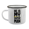 He is my superman, Κούπα εμαγιέ με μαύρο χείλος 360ml