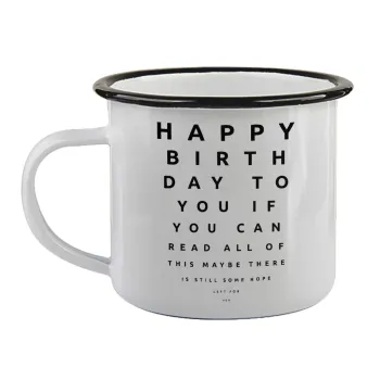 EYE tester happy birthday., Κούπα εμαγιέ με μαύρο χείλος 360ml