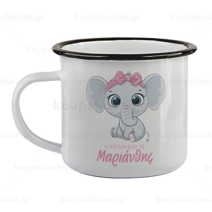 Η νονά μου, ελεφαντάκι ροζ, Κούπα εμαγιέ με μαύρο χείλος 360ml