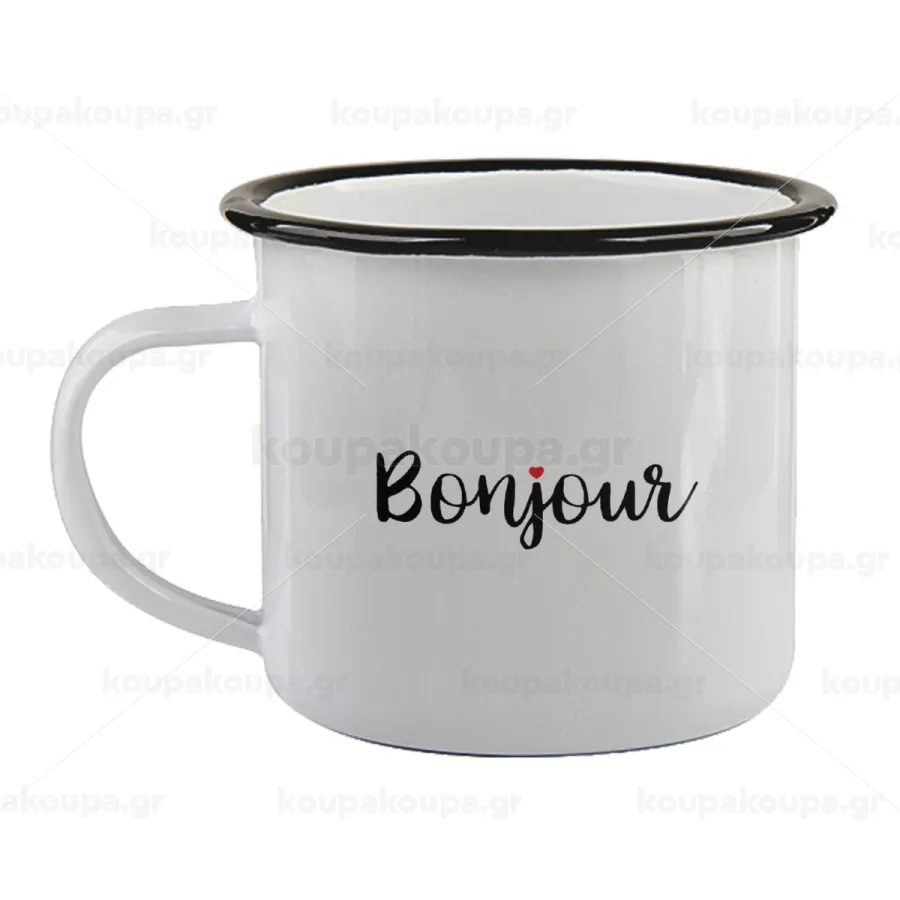 Bonjour, Κούπα εμαγιέ με μαύρο χείλος 360ml