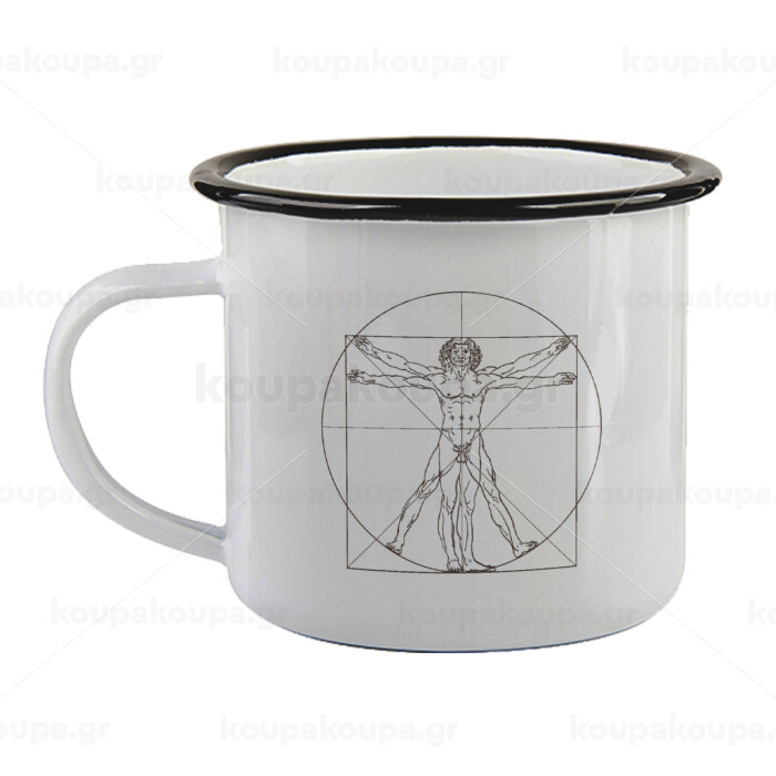 Leonardo da vinci Vitruvian Man, Κούπα εμαγιέ με μαύρο χείλος 360ml