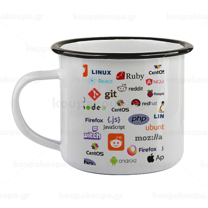 Tech logos, Κούπα εμαγιέ με μαύρο χείλος 360ml