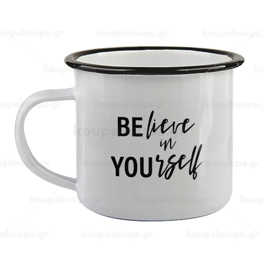 Believe in your self, Κούπα εμαγιέ με μαύρο χείλος 360ml