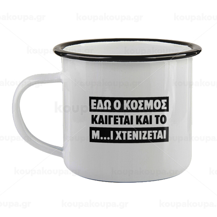 Εδώ ο κόσμος καίγεται και το Μ....Ι χτενίζεται, Κούπα εμαγιέ με μαύρο χείλος 360ml