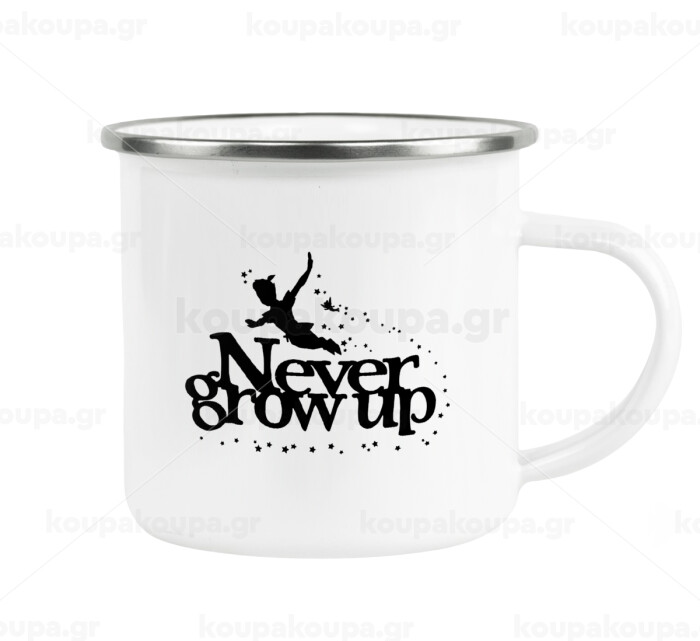 Peter pan, Never Grow UP, Κούπα Μεταλλική εμαγιέ λευκη 360ml