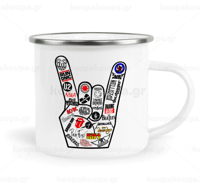 Best Rock Bands hand, Κούπα Μεταλλική εμαγιέ λευκη 360ml
