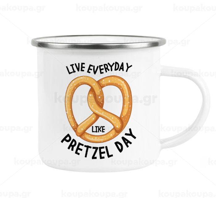 The office, Live every day like pretzel day, Κούπα Μεταλλική εμαγιέ λευκη 360ml