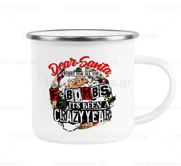 Dear Santa, sorry for all the F-bombs, Κούπα Μεταλλική εμαγιέ λευκη 360ml