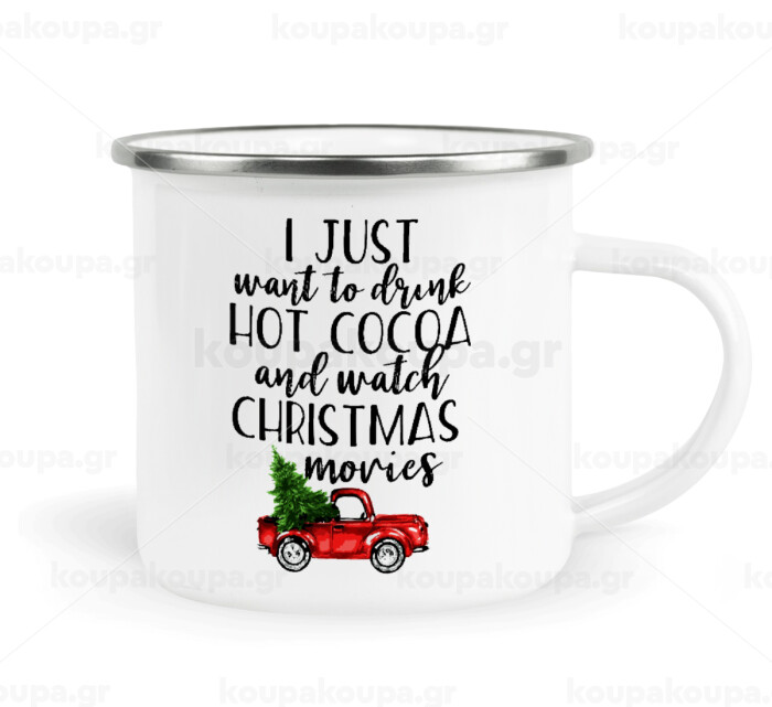 I just want to drink hot cocoa and watch christmas movies pickup car, Κούπα Μεταλλική εμαγιέ λευκη 360ml