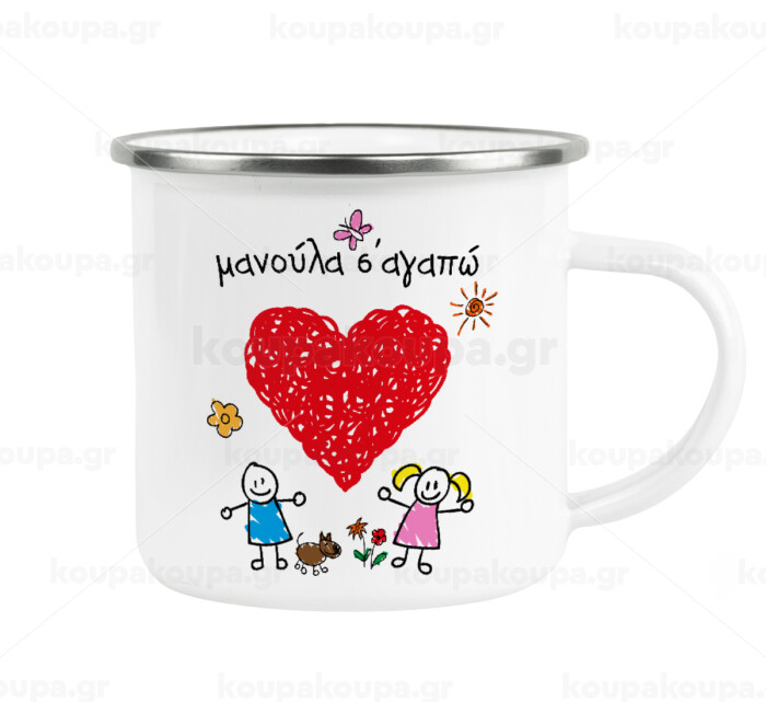 Μανούλα σ'αγαπώ!, Κούπα Μεταλλική εμαγιέ λευκη 360ml