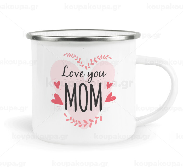 Mother's day I Love you Mom heart, Κούπα Μεταλλική εμαγιέ λευκη 360ml