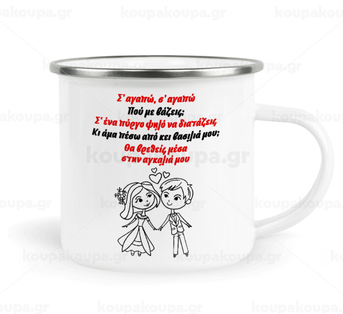 Σ΄ αγαπώ σ΄ αγαπώ που με βάζεις, Κούπα Μεταλλική εμαγιέ λευκη 360ml