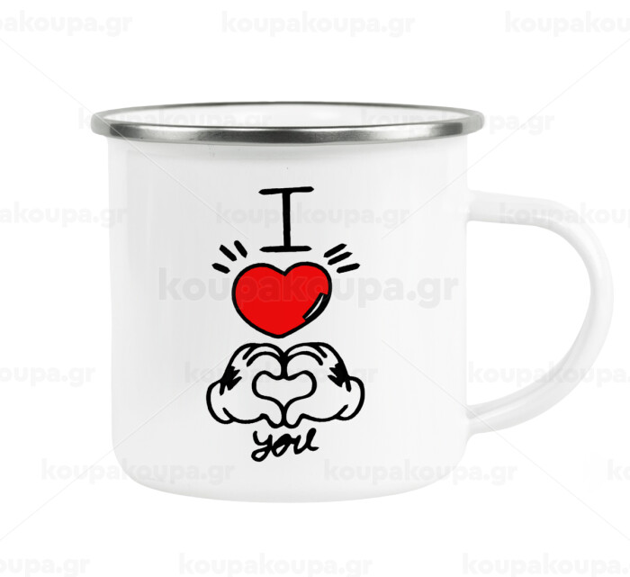 comics hands love, Κούπα Μεταλλική εμαγιέ λευκη 360ml