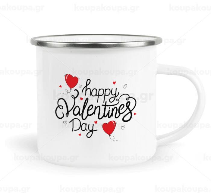 Happy Valentines Day!!!, Κούπα Μεταλλική εμαγιέ λευκη 360ml