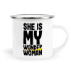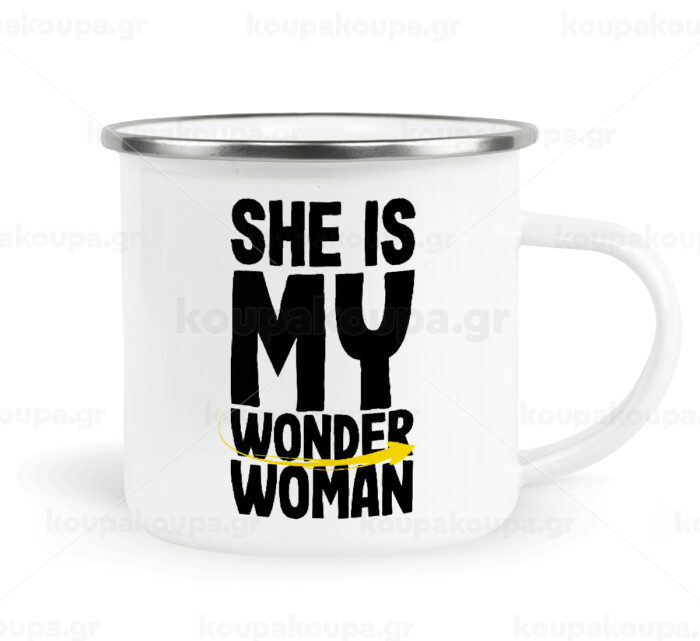 She is my wonder woman, Κούπα Μεταλλική εμαγιέ λευκη 360ml