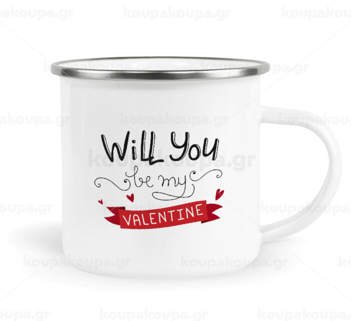 Will you be my Valentine???, Κούπα Μεταλλική εμαγιέ λευκη 360ml